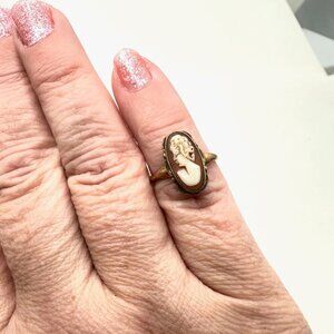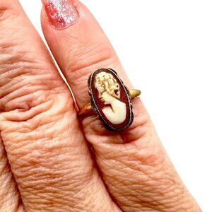 A Vintage Women's 10K Rose Gold Shell Cameo Ring, size 5.5, weight 1.9 grams, from the Estate. A charming piece of timeless style, perfect for adding a touch of classic elegance to any outfit.