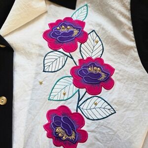 Vintage Womens 1X Floral Embroidered Cottagecore Artsy Boho Chic Black Shirt