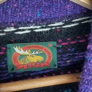 Vintage 90s Women's ALPS Gray Aqua Purple Mock Neck Fair Isle Snowflake Wool Sweater