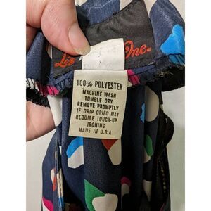 Vintage Women's Abstract Floral Pleated Utility Dress Navy Blue Size 14