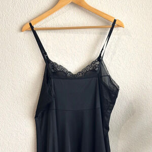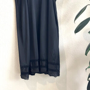 Vintage Womens Adonna Black Slip Dress 40/M Satin/Lace Lingerie Union Made USA