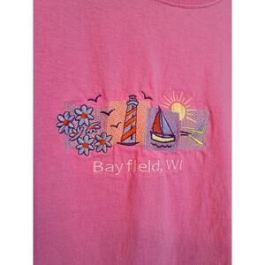 Vintage Women's Bayfield Wisconsin Pink Embroidered Summer Sz L