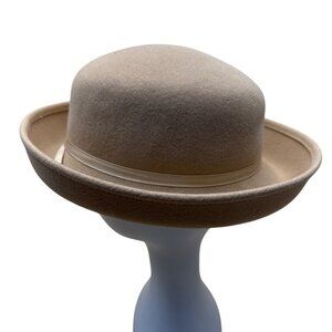 Vintage Women's Beige Sport Felt Bowler Hat One Size 22in Circumference