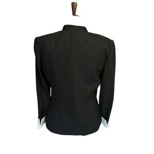 Vintage Women's Black Evening Jacket Rhinestones White Satin Lapel Size 16 Event