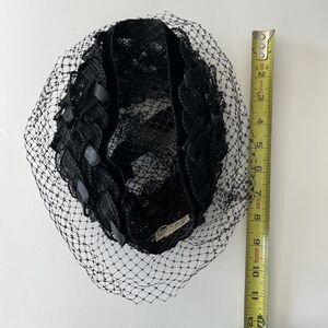 Vintage Women's Black Face Netting Weaved Pillbox Hat USA Union Made HH207802