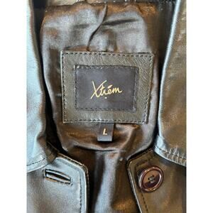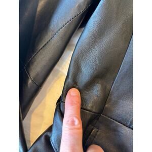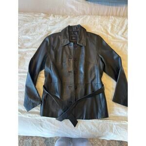 Vintage Women's Black Genuine Leather Belted Jacket with Buttons. Size large, fits a little smaller. In good condition BUT this is a vintage piece and has some flaws (shown in pics), PLEASE READ;