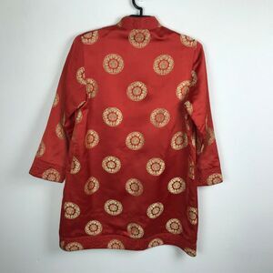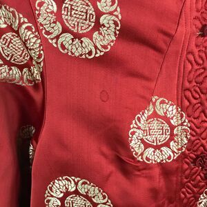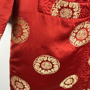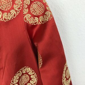 Vintage Womens Blazer Size M/L Red Gold Asian Style Quilted Accents Womens Sateen