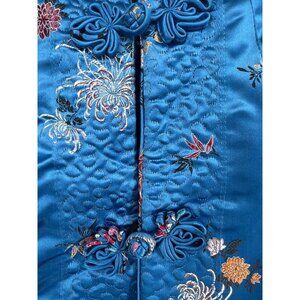 Vintage Women's Blue Black Reversible Satin Pankou Asian Blazer Size Large