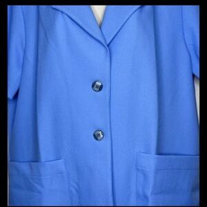 Vintage Women’s Blue Blazer L Short Sleeves 2 Buttons 2 Large Deep Front Pockets