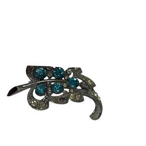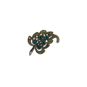 Vintage Womens Blue Flower Rhinestone Brooch Pin Silver Plated One Stone Is Miss