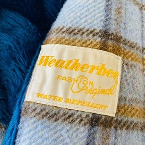 Vintage Womens Blue Plaid Double Breasted Cape w/ Pockets, M/L