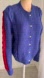Chunky Cowichan style cardigan in a beautiful blue with cable knit red stripes on the sleeves.