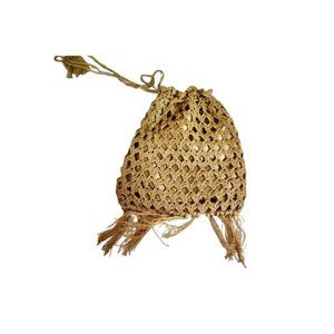 Vintage Women's Boho Crochet Drawstring Handbag Satin Lining Long Strap Fringe