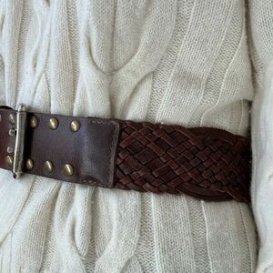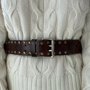 Vintage Womens Brown 100% Leather Studded Wide Hippie Waist Belt Sz M