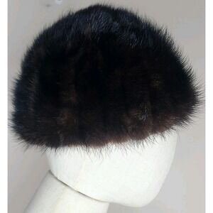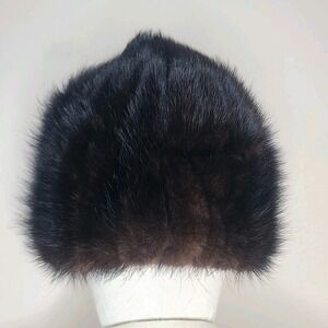 Vintage Womens Brown Black Genuine Mink Hat Made In The USA Union Made