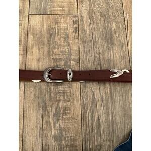 Vintage Women's Brown Genuine Leather western silver Belt hearts 1X plus size