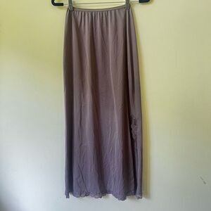 Vintage Women's Brown Pull On Lace Trim Front Slit Maxi Skirt Size Small