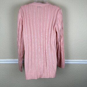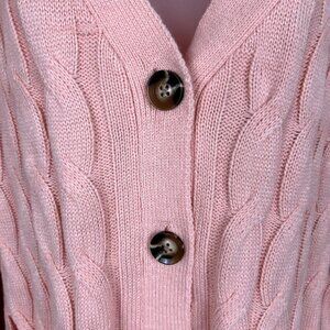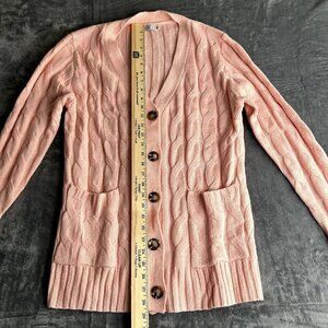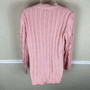Vintage Womens Button Cardigan Medium Light Pink Coquette Cable Knit Academia