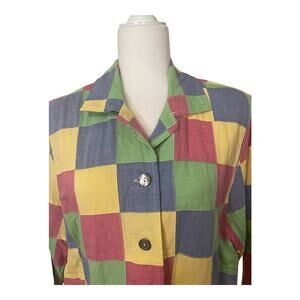 Vintage Button Down Pastel Colors Patchwork Shirt Shacket Jacket Size 16