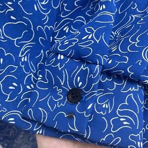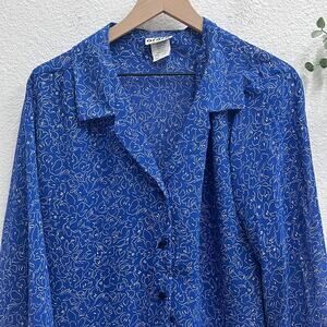 Vintage Womens Button Down Shirt Size 14 Blue Funky Maximalist Artsy 70s Rad Retro Pattern
