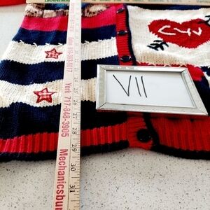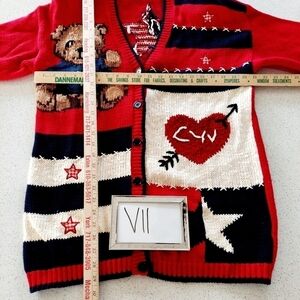 Vintage Women's Button Front Cardigan Hand Knit Large ? missing tags but I included measurements in photos, Teddy Bear Sweater 1990s. Faint stain shown in last photo.