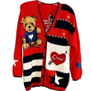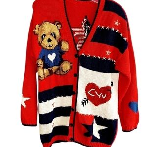 Vintage Women's Button Front Cardigan Hand Knit Large ? Teddy Bear Sweater 1990s