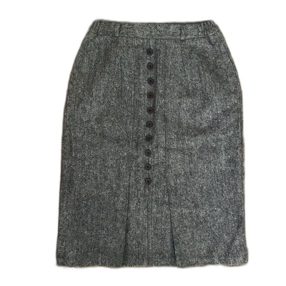 Vintage Women's Button Front Pencil Skirt Gray Tweed XS Preppy Business Casual