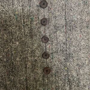Vintage Women's Button Front Pencil Skirt in Gray Tweed. Elastic in the waist and lining make it comfortable for all day wear at school or in the office. Pair it with your cutest cardigan or warmest fitted sweater for a cute winter look. The buttons or not functional.