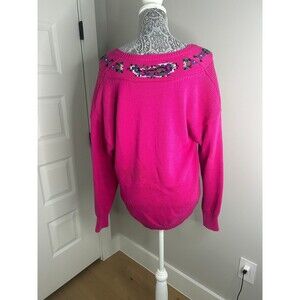 Vintage Womens Cambridge Dry Goods Sweater Size Medium M V Neck Pink Floral