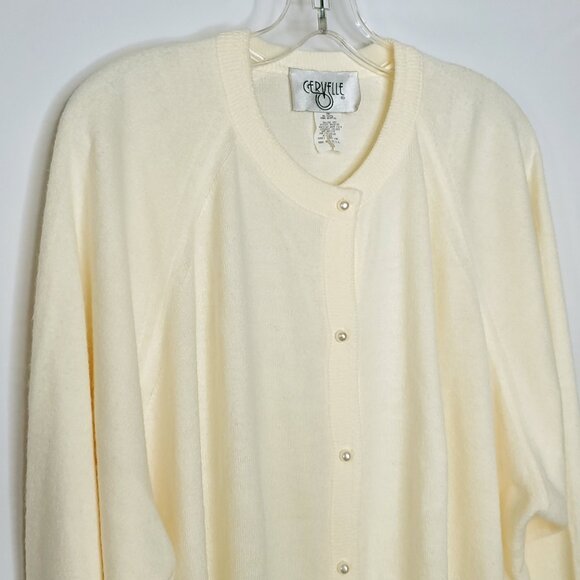 Vintage Womens Cardigan Sweater 3X Ivory Faux Pearl Buttons Modest Soft