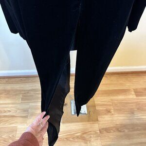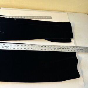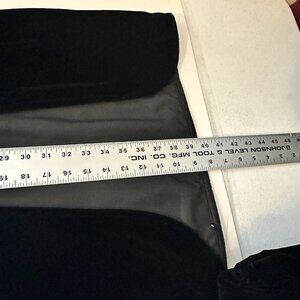 Very fun pick up. Black Velvet (rayon) in good condition. Both jacket and skirt have a sizeable slit on the back to add flare and style. Skirt is maxi length. Both labeled 13/14 but more like a modern small based on measurements- see pictures. Pockets in coat. Lovely set.