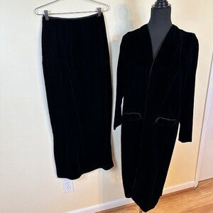Vintage Womens Charm Black Velvet Opera Coat & Skirt Set SZ Small Hollywood USA