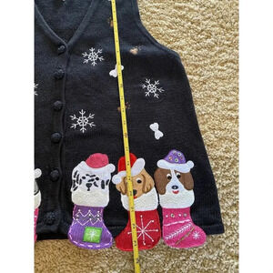 Vintage Womens Christmas Dog Stocking Sweater Vest 90s Size Large Embroidered