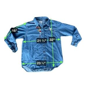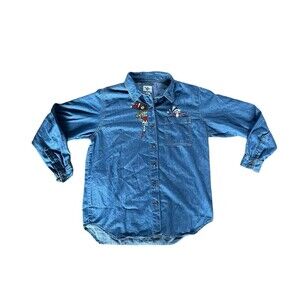 Vintage Women's Christmas ELF & Toys Long Sleeve Denim Jean Shirt Size XL Cotton