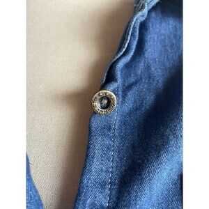 Get into the holiday spirit with this vintage women's jean shirt from Nut Cracker. The shirt features a collared neckline and button closure, with a soft and lightweight denim fabric accented by metal buttons and embroidery. The long sleeves and casual sleeve type make it perfect for the winter season, while the seasonal pattern and holiday theme add a touch of festive charm.