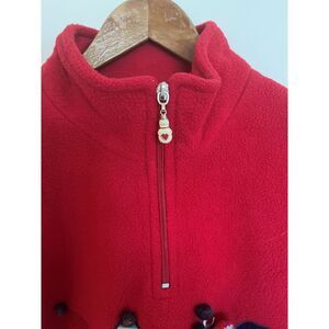 Cute appliqued Christmas snowmen with hats by vintage White Stag. Preowned. Good condition. Pullover 1/4 zipper. Polyester. 24" pit to pit. 22" sleeve. 25" shoulder to hem. Little bit of pilling. Size 12-14