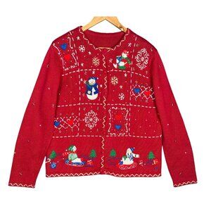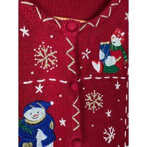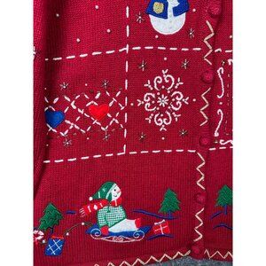 Vintage Womens Christmas Winter Sweater Large Cardigan Beaded Embroidered