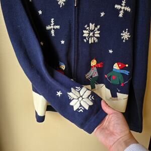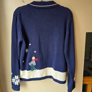 Vintage Womens Christmas Zipper Cardigan Sweater SZ L Embroidered Ski Snowflake
