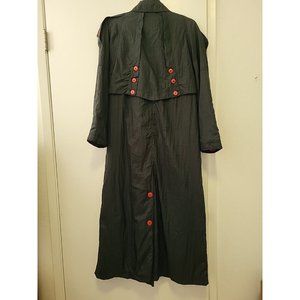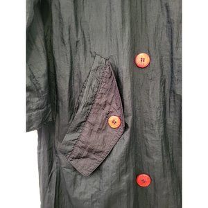 Vintage Women's Climatiser Nylon Trench Coat Black with Red Buttons Small