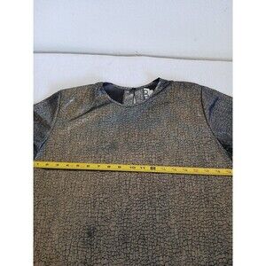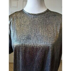 Vintage Womens Clio Gold Metallic Short Sleeve Blouse 100% Polyester SML USA