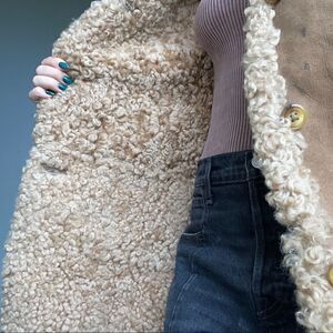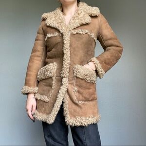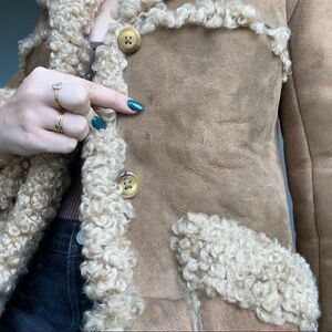 Vintage Womens Cottagecore Brown Tan Shearling Warm Winter Leather Jacket XS