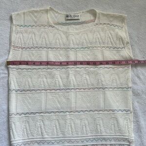 Vintage 80s Women’s White Pastel Cottagecore Spring Knit Modest Sweater Vest Top
