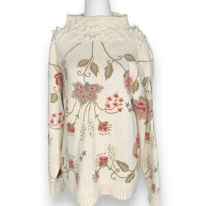 Vintage Women’s Country Suburbans Sweater Cream Floral Mock Neck Knit Medium