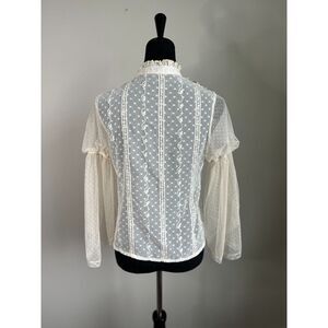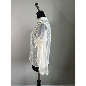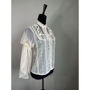 Vintage Women's Cream Lace Edwardian Inspired Sheer Lace Bell Sleeve Top Size S