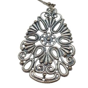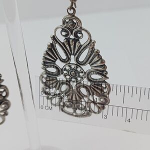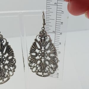 Vintage Womens Dangle Earrings Nickel Free Silver Tone Teardrop Filligree