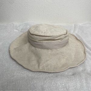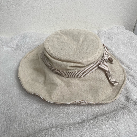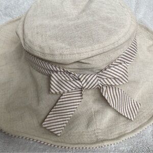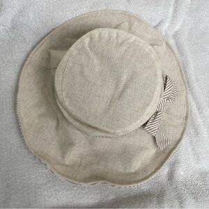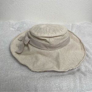 Vintage Women's Dedo C&C Beige Stripe Bow Bucket Sun Hat O/S Classic Coastal