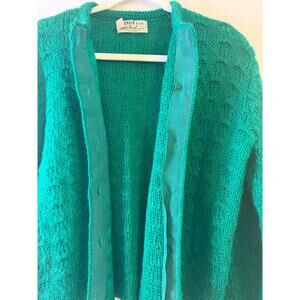 Vintage Womens Dotty Man Mohair Blend Kelly Green Pinup Rockabilly Twee Cardigan