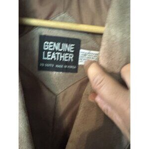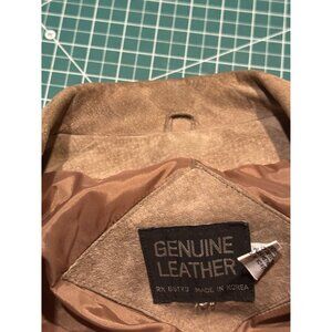 Vintage Womens Double-Breasted Genuine Leather Blazer Jacket Size XL Tan Made In