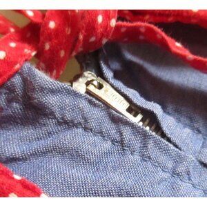 Vintage Womens Dress 6 1960's Handmade Slinky Chambray Red Polka Dot Country Zip
