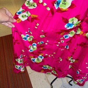 Vintage Womens Dress Size Large Pink Floral A Line Pleated Casual USA